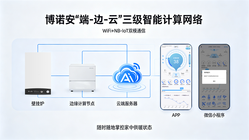 智能供暖的未来已来,博诺安AIOT全预混冷凝壁挂炉,用有思想的智能,守护每一个家庭的温暖,让科技有温度,让生活更省心。