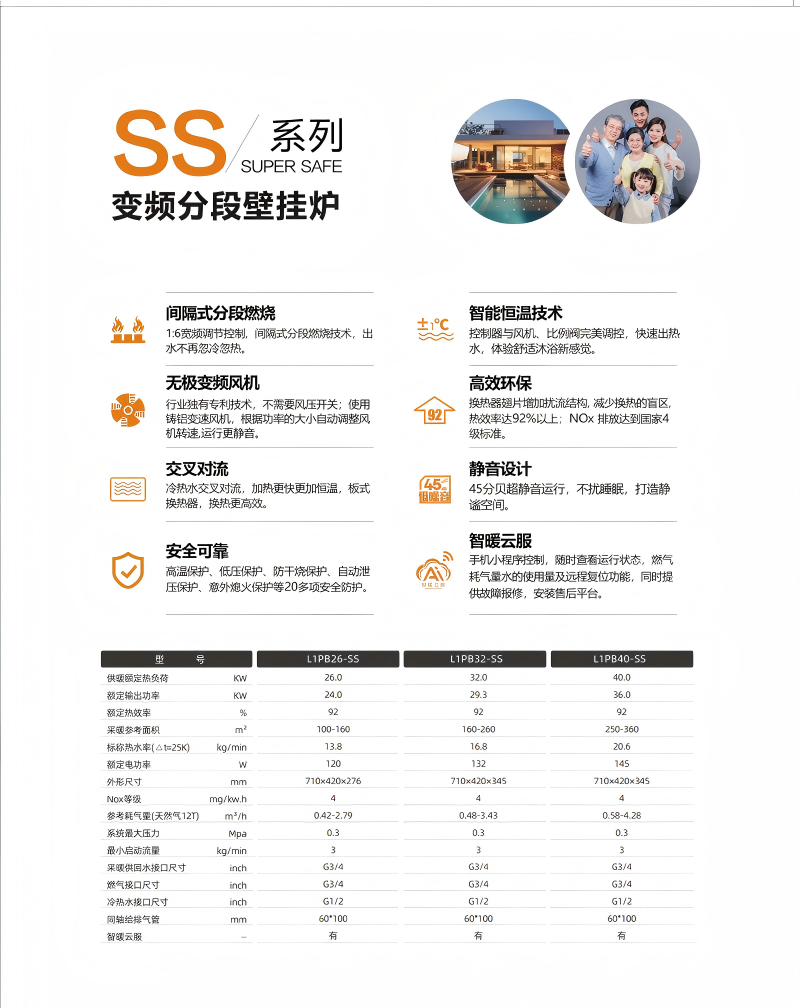 SS系列:变频分段壁挂炉